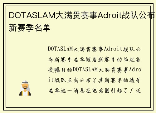 DOTASLAM大满贯赛事:电竞与萌宠的完美结合 DOTASLAM大满贯赛事作为全球电竞领域的重要赛事之一,一直以其高水平的竞技性和娱乐性吸引着众多玩家和观众的关注。而TeamDogChamp作为其中的一支独特战队,不仅以其出色的实力在赛场上屡创佳绩,更因其“萌宠”主题的团队文化而备受瞩目。本文将全...